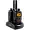 Komplet dveh osebnih mobilnih radijskih postaj Doseg do 8 km na odprtem terenu 16 kanalov z 38 kodami CTCSS 83 kod DCS za zasebno komunikacijo Frekvenčni pas 446 MHz Oddajna moč 0,5 W Vrtljivo stikalo z nadzorom glasnosti Samodejno skeniranje kanalov 15 izbirnih tonov izbire Funkcija VOX Spremljanje kanalov Spremljanje dveh kanalov Samodejno odpravljanje šumov Samodejno varčevanje z baterijo Ton Konec prenosa Vklop/izklop Zaklepanje tipk Vklop/izklop Tonacija tipk Velik osvetljen zaslon Indikator ravni napolnjenosti baterije Odstranljiva sponka za pas Priključek za polnjenje in zvok (HFS) Napajanje 4 x baterije AAA (vključene)