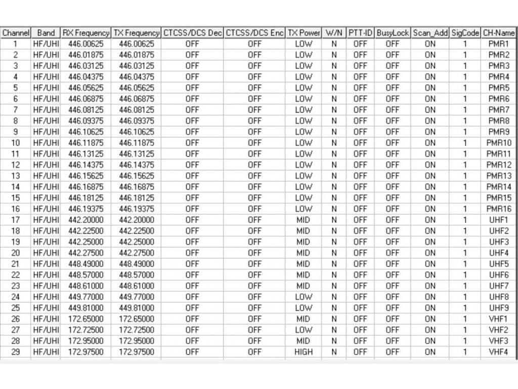 - CTCSS / CDCSS / DTMF kodiranje in skeniranje