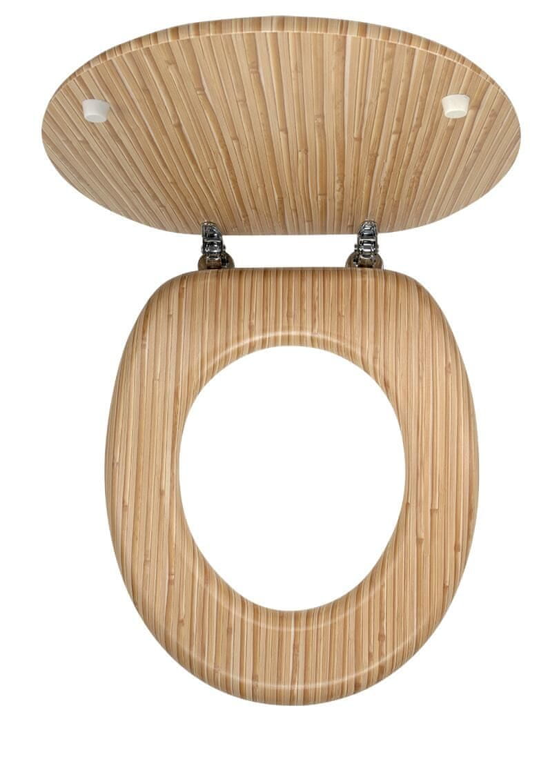 WC sedež BAMBUS, furniran MDF. material: furniran MDF, kromirana medenina les: bambus WC sedež polepša celo tako stvar, kot je stranišče. Celoten opis