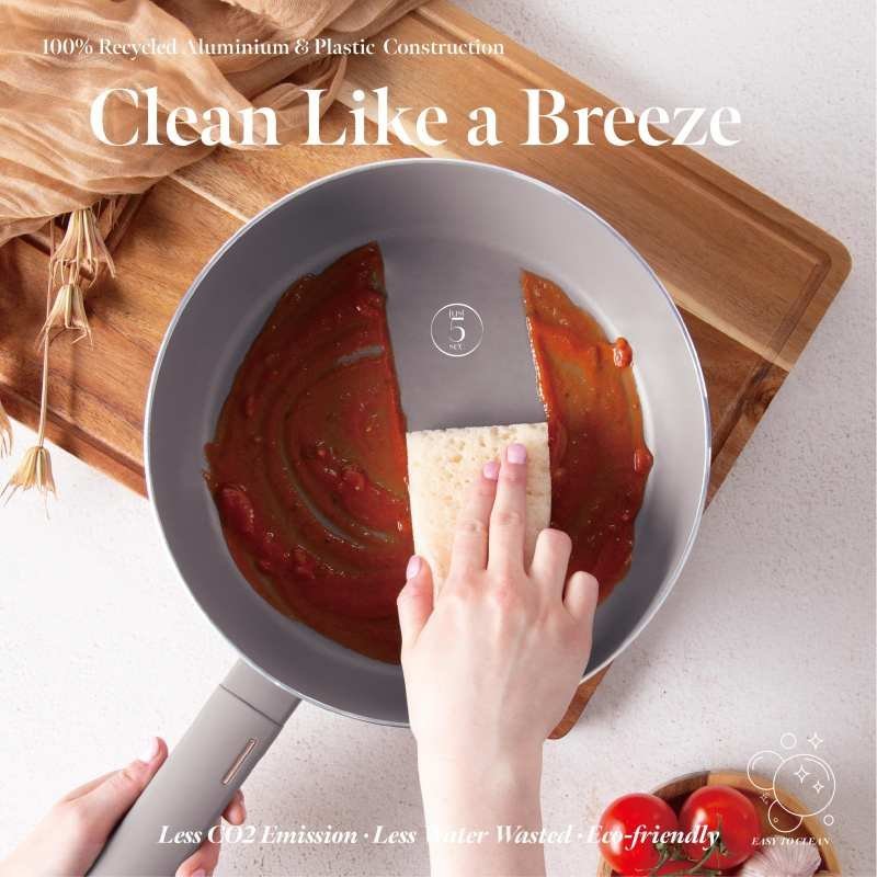- 3-slojna neprijemljiva površina s titanovo zasnovo za kuhanje z minimalno količino maščobe