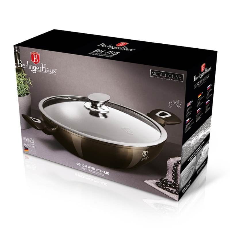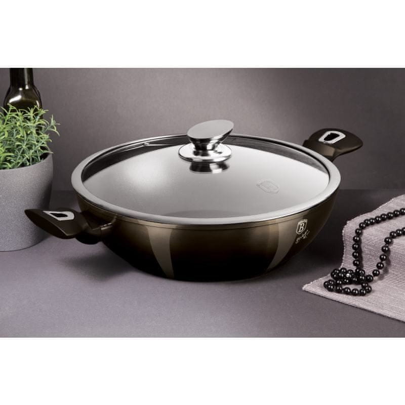 Berlingerhaus Ponev WOK s pokrovom z marmornato površino 30 cm Shiny Black Edition BH-7115