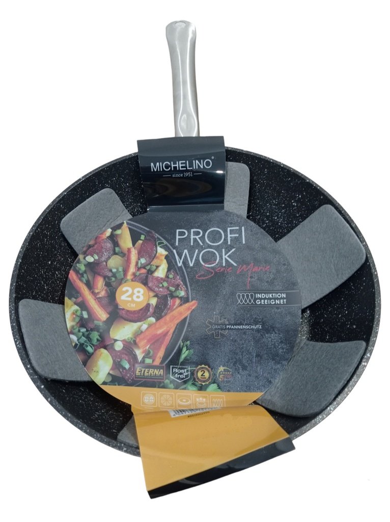 Njegova polkrogla oblika omogoča, da hrano pripravimo hitreje, zato ostane hrustljava in polna vitaminov in mineralov. Dno iz nerjavečega jekla poskrbi za optimalno razporeditev toplote, zato se hrana hitreje segreje, visokokakovostni material pa poskrbi, da se toplota ohranja dlje časa. Notranji premaz v videzu marmorja, poskrbi, da se hrana ne prijema, zunanji premaz, pa poskrbi, da je vok popolnoma odporen na vročino, zato ga lahko uporabljamo tudi v pečici do 210°C.Odlikuje ga ergonomski ročaj iz nerjavečega jekla, ki se med kuhanjem ne segreje. Položno dno omogoča, da jih je lažje uporabljati na vseh vrstah štedilnikov. Oglejmo si podrobno vse podrobnosti. Zelo primeren je za jedi, ki jih moramo pripraviti na visoki temperaturi. Zaobljeni robovi vključujejo varno rokovanje in enostavno čiščenje.