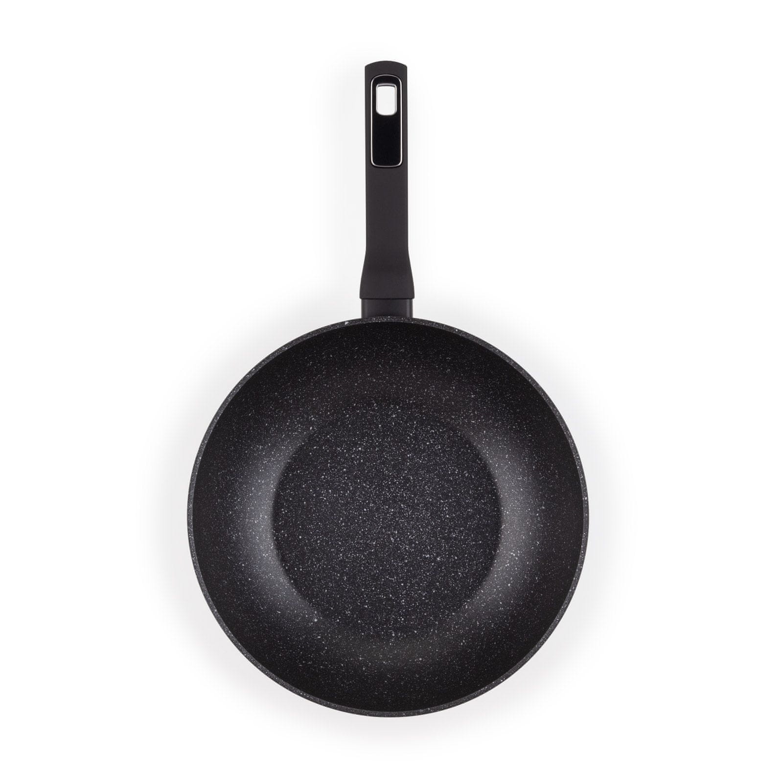 Notranjost voka je obdelana z neoprijemljivim marmornim premazom z mineralnimi delci, ki povečujejo odpornost površine proti mehanski obrabi in praskam. Sestava premaza omogoča pripravo hrane z minimalno količino dodanih maščob.