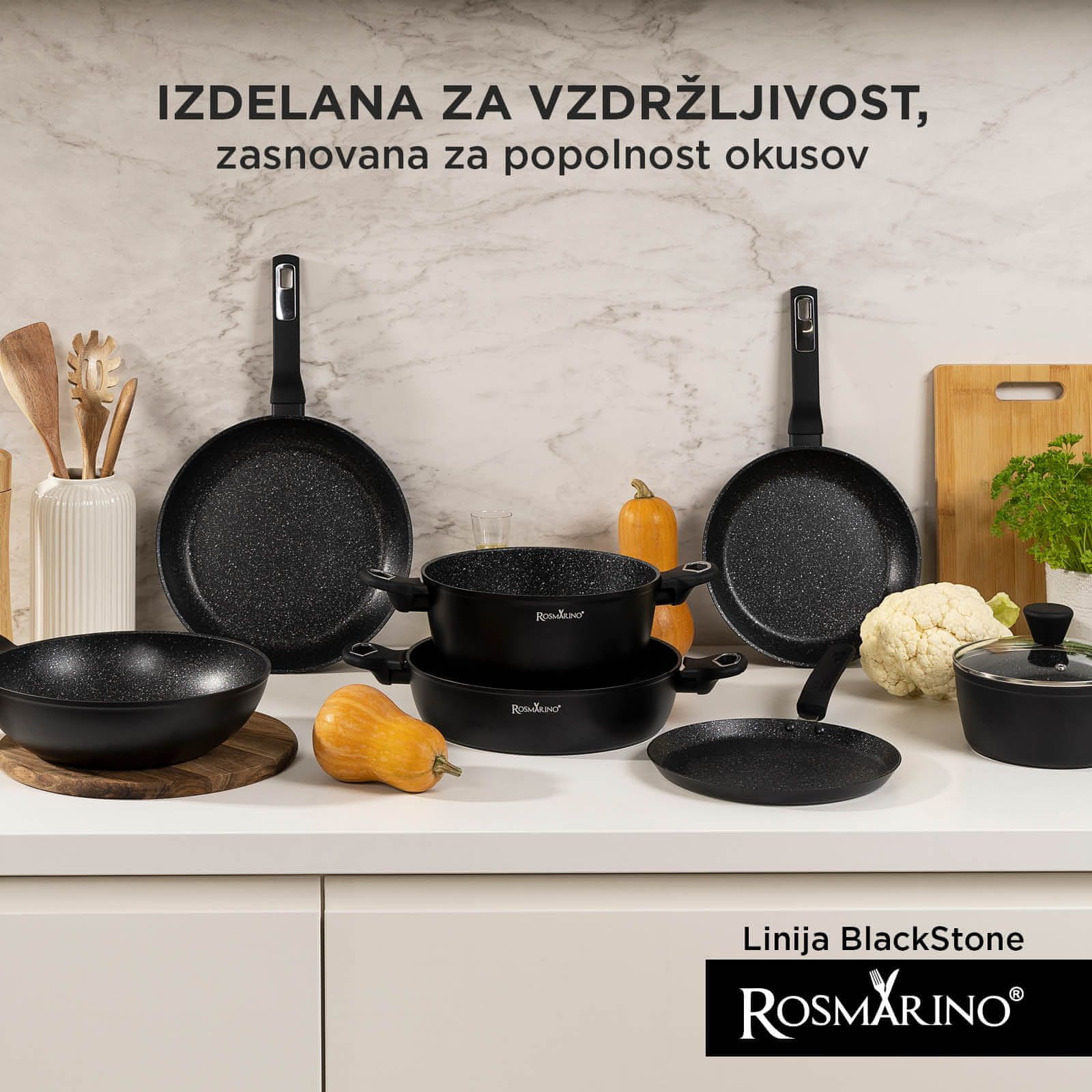 - Mineralna zaščita: Marmorni sloj zmanjšuje sprijemanje hrane in povečuje odpornost proti obrabi.