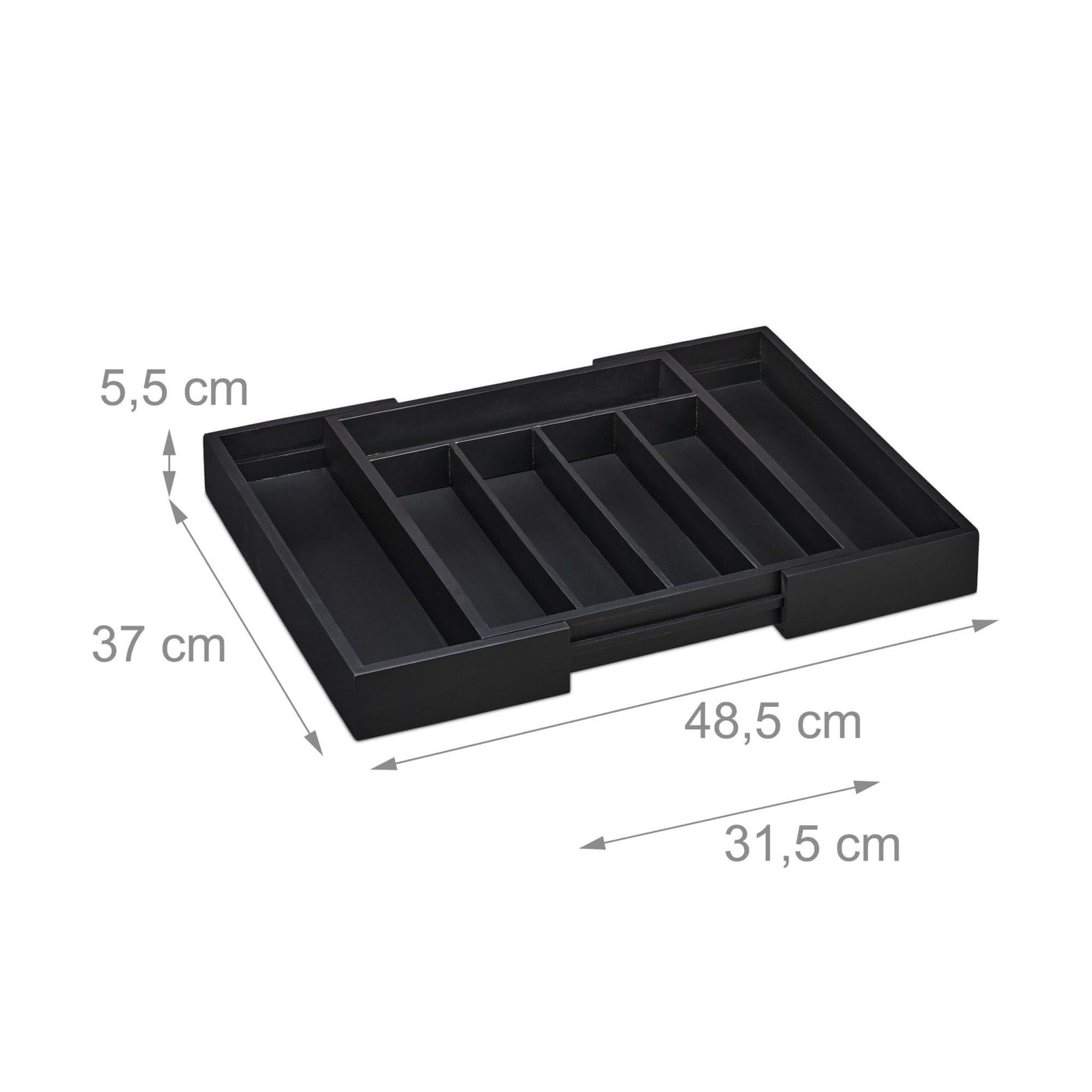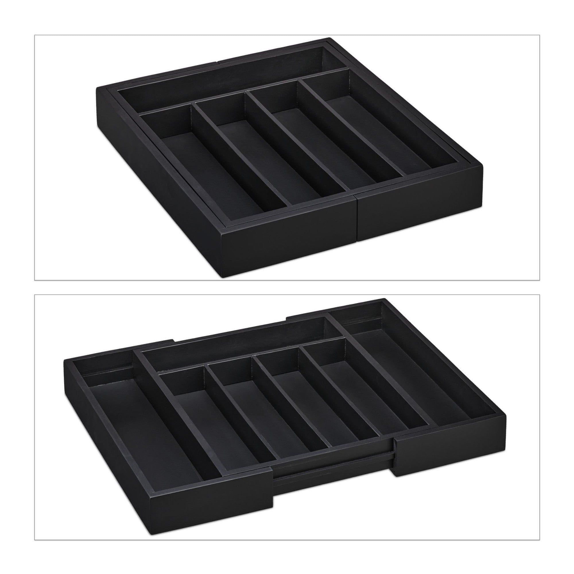 Northix Raztegljiv bambusov pladenj za jedilni pribor v črni barvi z 5 predelki