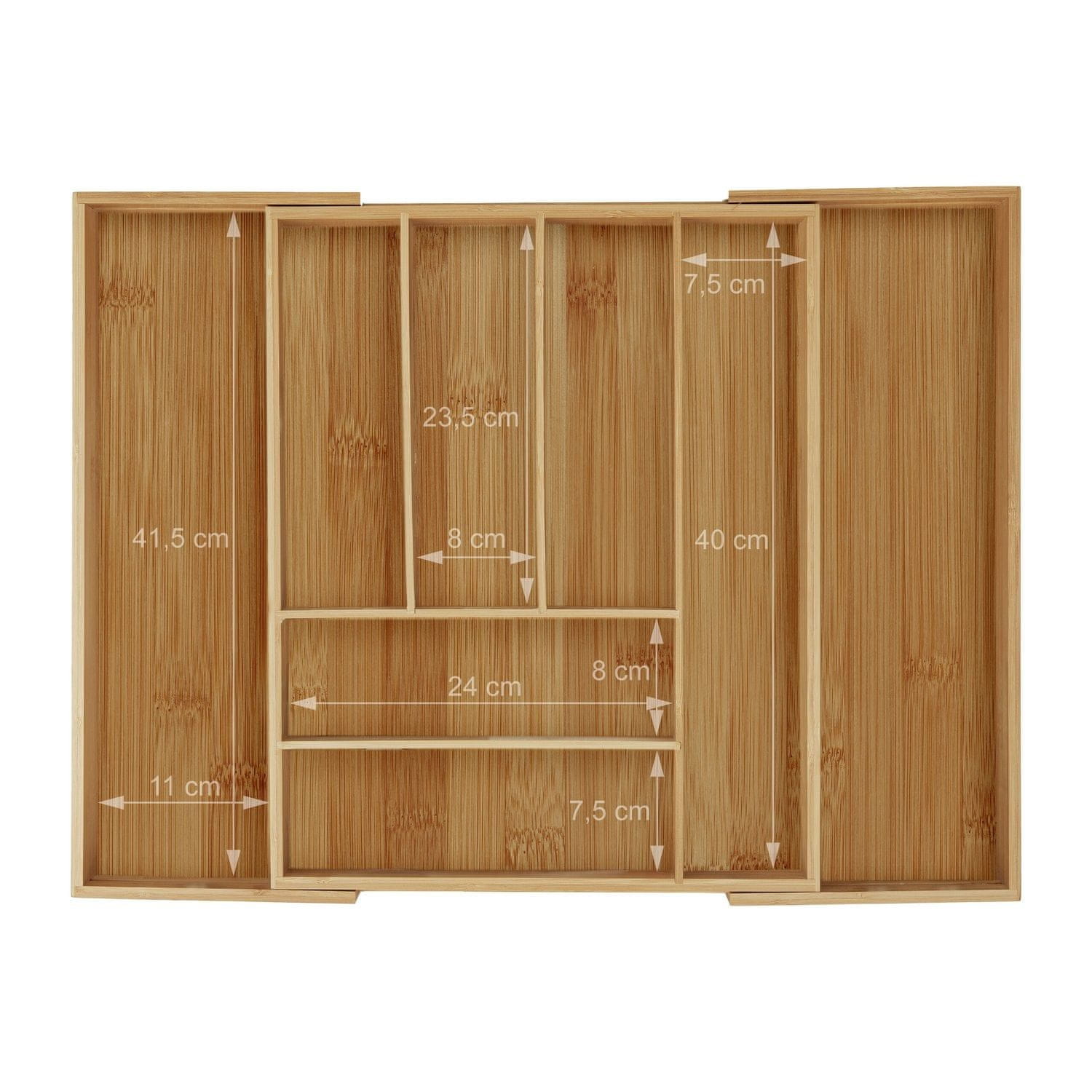Northix Raztegljiva bambusova škatla za jedilni pribor z 6 predali in 2 izvlečnima predaloma