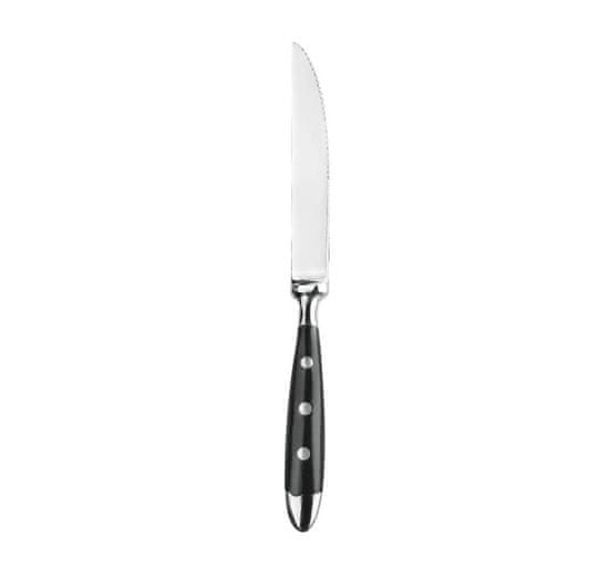 Nož s posebej oblikovanim ročajem, rustikalnega izgleda. Nož je primeren za postrežbo pizz, steak-ov, posebej oblikovan je za potrebe pizzerij in nudi optimalno rezanje, hkrati pa ohranja všečen in estetski izgled. Dolžina: 21,5 cm Debelina ročaja: 10 mm Količina: 12 kos Celoten opis