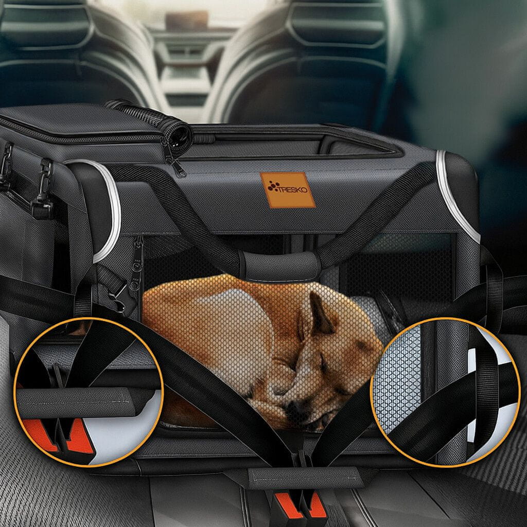 Dva prostorna žepa sta idealna za shranjevanje priboljškov in igrač med izleti k veterinarju ali na počitnicah. Zaradi zložljive jeklene konstrukcije je mogoče zaboj hitro zložiti in razstaviti, kar olajša njegovo shranjevanje in prihrani prostor. Prepravna škatla je izdelana iz trpežnega materiala 600D Oxford, ki je enostaven za vzdrževanje.