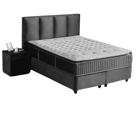 Kakovostna in udobna box spring postelja »NORA« z elegantnim, oblazinjenim vzglavjem vam zagotavlja prijeten in miren spanec, odlikuje pa jo tudi privlačen in razkošen videz. Opremljena je z kakovostno 7-consko žepkasto vzmetnico z dobro zračno hladno peno ponuja prvovrstno izkušnjo ležanja. Priloženi nadvložek je debel najmanj 10 cm in ima luksuzno prevleko mehko na dotik. Poleg tega ima podloga visokokakovostno polnilo iz hladne pene. Nadvložek ne le poveča udobje, ampak tudi prekrije vrzel med vašimi vzmetnicami. Tako lahko v celoti uživate v nočnem počitku! Postelja ima tudi integriran posteljni predal, ki ponuja veliko prostora za shranjevanje. Zahvaljujoč praktičnemu prostoru za shranjevanje, ki se nahaja pod celotno površino vzmetnice, lahko lično in priročno shranite skoraj vse predmete, ki jih želite. Plinske vzmeti, ki podpirajo odpiranje škatel, omogočajo še posebej enostaven dostop do ogromnega prostora za shranjevanje. Po želji lahko k postelji naročite dve ujemajoči se nočni omarici.