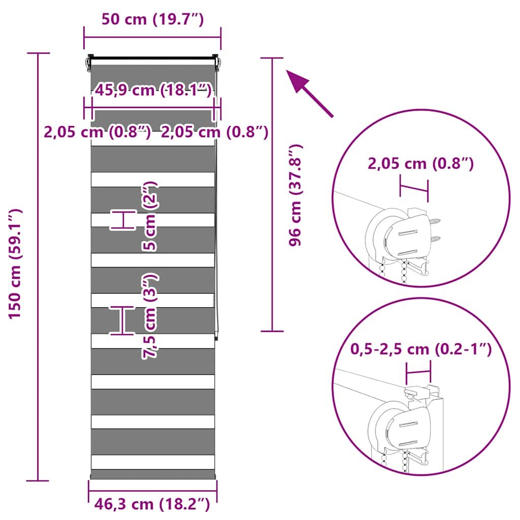 Vidaxl Zebra senčilo temno sivo 50x150 cm tkanina širina 45,9 cm