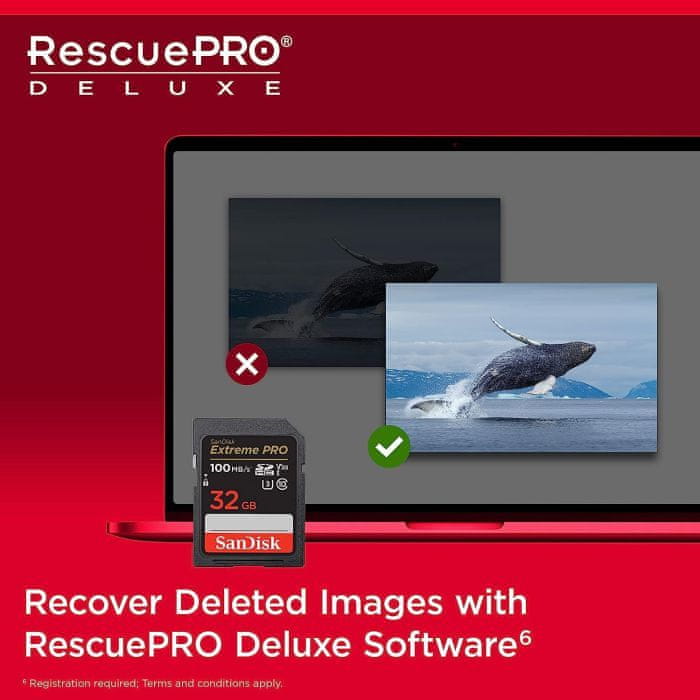 Vključuje ponudbo za programsko opremo za obnovitev podatkov RescuePRO® Deluxe za obdobje 2 let4, ki vam omogoča obnovitev izbrisanih slik.