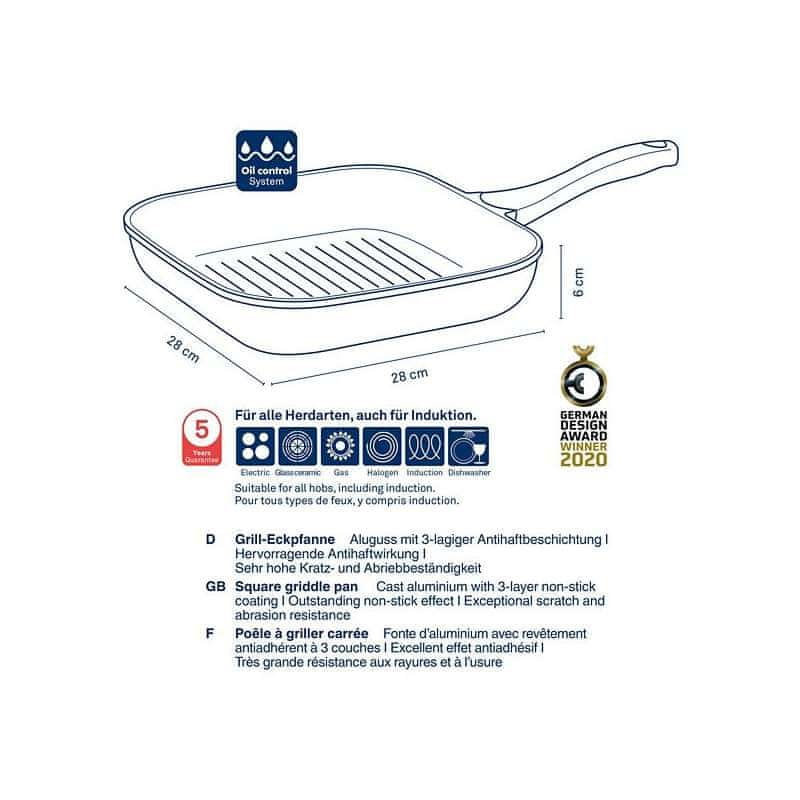 Liti aluminij s površino proti prijemanju Ročaj iz bakelita Soft Touch 28 cm x 28 cm, 6 cm v Celoten opis