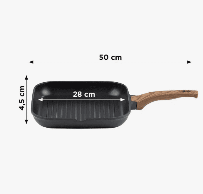 Žar ponev premera 28 cm iz kakovostnega litega aluminija.
