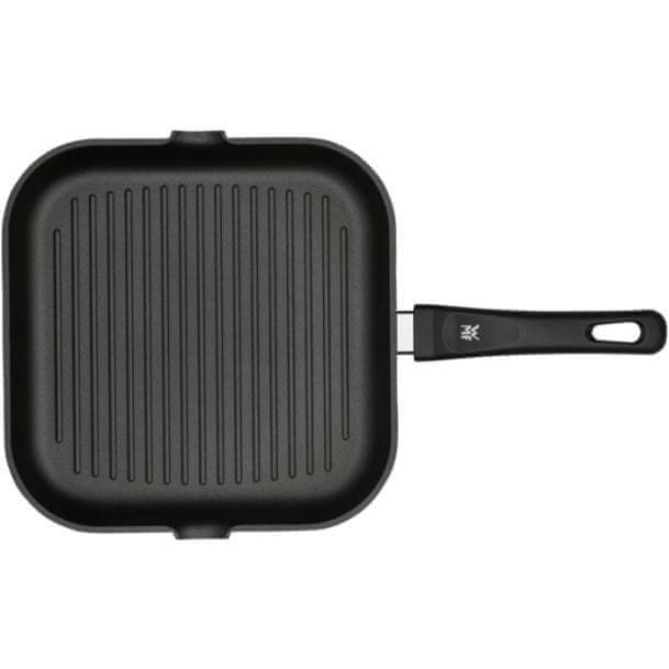 Od mehkega mesa, pečenega na žaru do okusne pečene zelenjave, ponev WMF poskrbi za preprosto peko na žaru. Njena varna, visoko zmogljiva prevleka proti prijemanju obljublja popolne rezultate na občutljivih sestavinah, medtem ko debela konstrukcija iz litega aluminija zagotavlja optimalno porazdelitev toplote in enakomerne rezultate. Združljiva je s plinskimi, električnimi in keramičnimi kuhalnimi ploščami. Ponev je zasnovana s praktičnim toplotno izoliranim ročajem, ki ostane hladen na dotik.