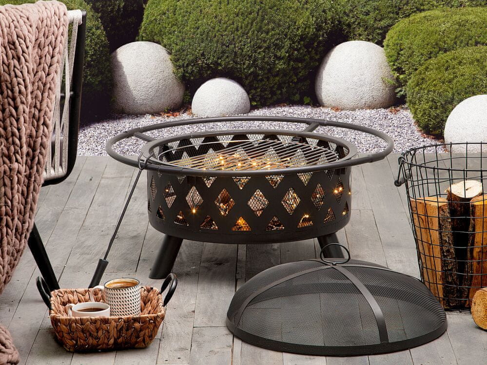 Beliani Zunanji kovinski kamin z žarom v črni barvi