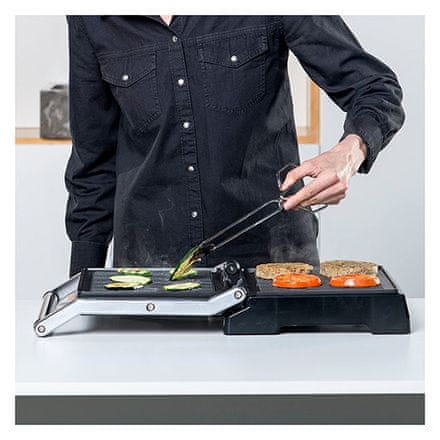 Značilnosti: – raztegljive površine (180°): za uporabo kot dvojni namizni žar – vsestranska plošča za žar s 6 položaji: nastavljiva za različne debeline, velikosti in oblike živil – pladenj za. Celoten opis