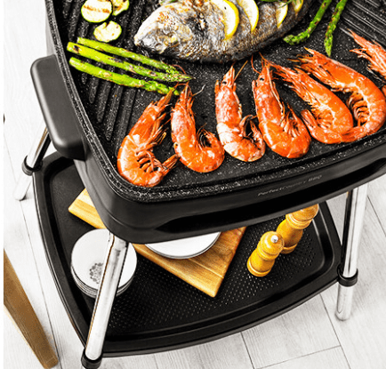Deluje z močjo 2000 W in se lahko pohvali s tehnologijo Power Grill z vgrajenim grelnim elementom za boljšo difuzijo toplote. Plošča z dimenzijami 43 × 38 cm je narejena iz litega aluminija s prevleko proti sprijemanju. Žar ponuja različne cone pečenja na ravni ali rebrasti površini. Pokrov omogoča enakomerno ogrevanje in deluje po principu konvekcijske pečice. Rezultat je enakomerno pečena in sočna hrana.