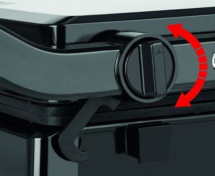 Vredno boste cenili praktično ključavnico, zaradi katere lahko aparat za panini enostavno in varno shranite v kuhinjsko omarico tudi v pokončnem položaju
