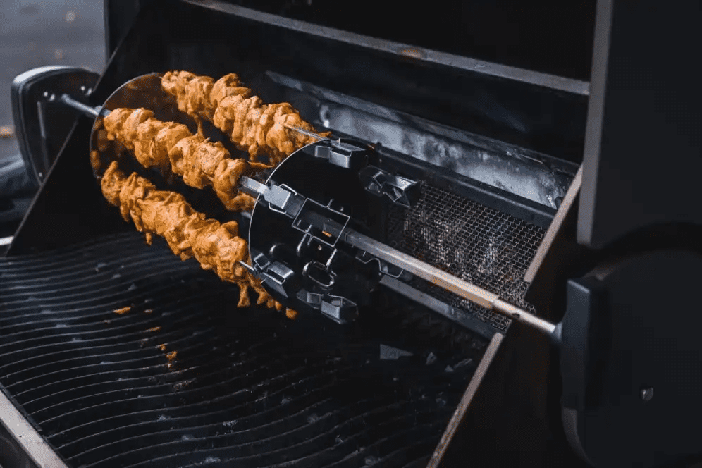 Svojo najljubšo hrano preprosto nataknite na široka nabodala in jih naložite na kolo in palico za ražnjič. Uporabite infrardeči zadnji gorilnik ali glavne spodnje gorilnike na žaru za popolno pečenje vsakega grižljaja.