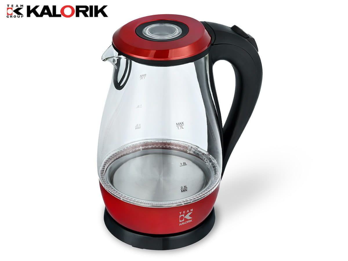 shumee Brezžični grelnik vode Kalorik, rdeče steklo, 1,7 l, 2000 W, JK 1042 R