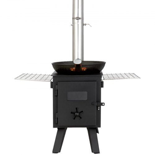 Ta prenosni leseni štedilnik je zasnovan za ljubitelje narave ki iščejo učinkovite rešitve za ogrevanje in kuhanje med kampiranjem ali uživanjem na prostem. Njegova robustna konstrukcija in prostorna kurišče zagotavljata dolgotrajno toploto medtem ko priložene dimniške cevi in dodatki omogočajo varno in priročno uporabo. Štedilnik je zasnovan za vzdržljivost in enostavno vzdrževanje zaradi česar je idealen za uporabo v šotorih in drugih zunanjih okoljih.