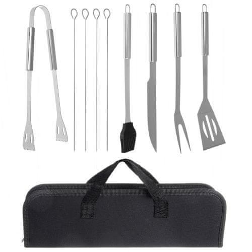 - 9 PRIPOMOČKOV V SETU – set pribora za žar vsebuje vse potrebno za ljubiteljsko in bolj profesionalno peko na žaru. Tu najdemo oster nož, vilice, pa tudi lopatko, čopič in klešče. Poleg tega komplet vsebuje tudi 4 nabodala – popolna za pripravo nabodal.