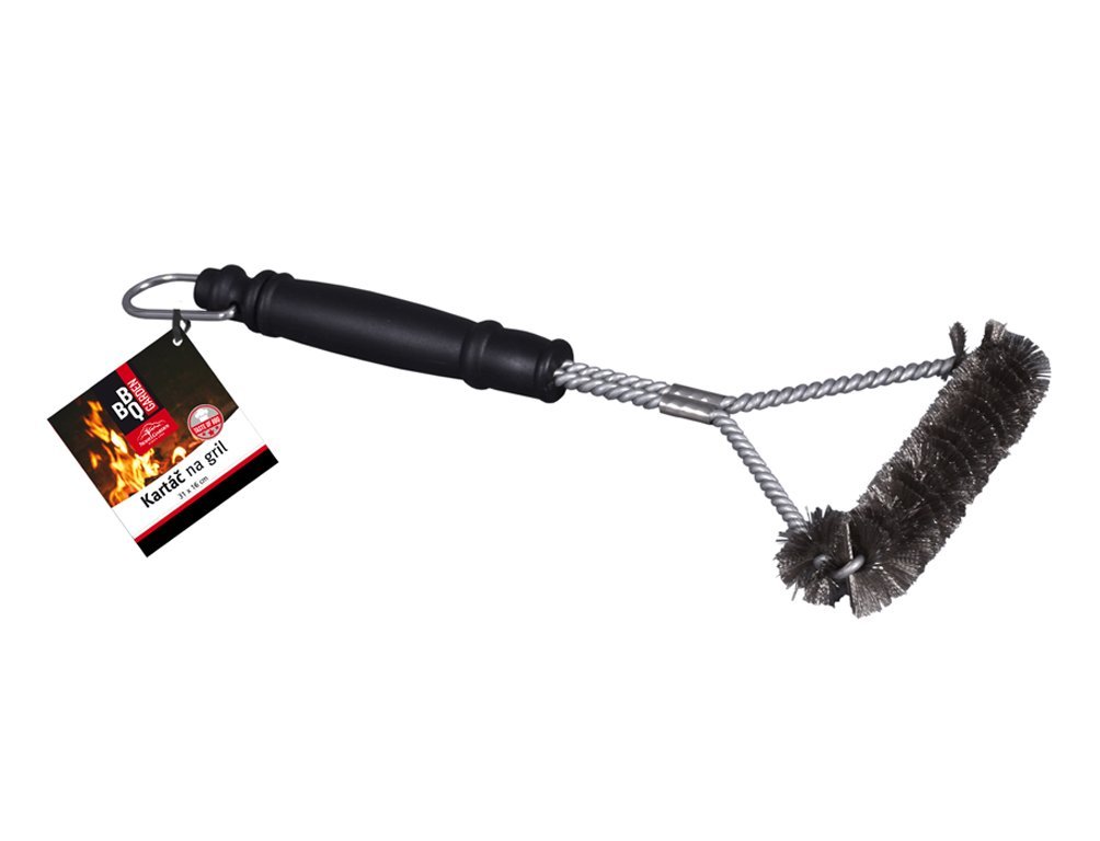 Čopič za žar BARBECUE GARDEN 2 v 1 je kombinacija čopiča iz 8 vrst jeklenih žic in jeklenega strgala za najbolj udobno čiščenje. Telo krtače je izdelano iz polipropilena. Dimenzije: dolžina 22 cm.