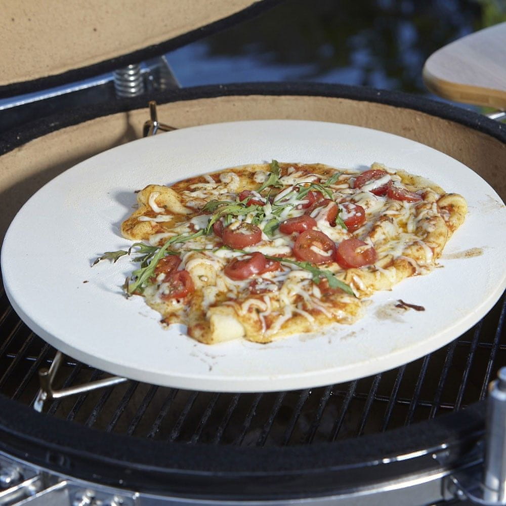 Vključuje karamični kamen za peko (premer 47 cm), glavno trpežno rešetko, stranske poličke, močno kovinsko podnožje in črno kovinsko vrhnjo barvo. Žar je idealen za pečenje in dimljenje.