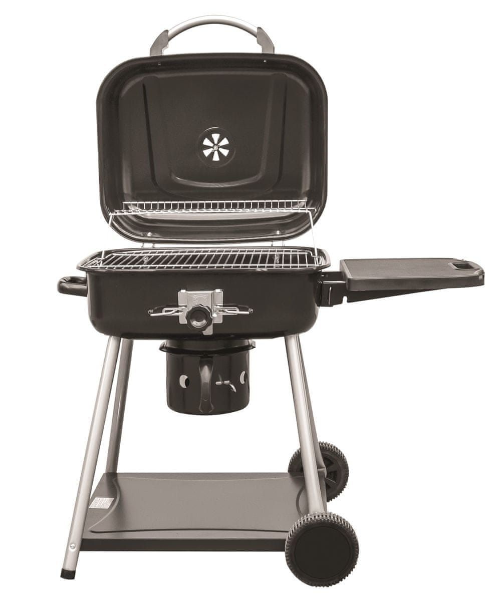 Vrtni žar MIR-417 je praktičen žar na oglje z gibljivim pokrovom. Pokrov je opremljen z nastavljivim prezračevanjem, kar vam omogoča popoln nadzor nad pretokom zraka in temperaturo znotraj žara. Žar je izdelan iz emajliranega jekla. V notranjosti žara sta ena nad drugo nameščeni 2 kromirani rešetki za žar. Medtem ko boste na spodnji rešetki pripravljali glavno jed, lahko z zgornjo pripravite npr. prilogo. Za lažje rokovanje med pripravo hrane se zgornja rešetka ob odpiranju pokrova samodejno premakne nazaj, tako da sta obe rešetki lahko dostopni. Spodnji del žara je opremljen s praktičnim pepelnikom in zračnim ventilom za regulacijo zraka. Na desni strani žara je zgibna polica z ročajem, v spodnjem delu žara pa kovinska polica za odlaganje pribora. Za lažje rokovanje je žar opremljen z dvema kolescema in ročajem. Dimenzije žara so 104×65×90 cm, glavne rešetke pa 57×45,5 cm.