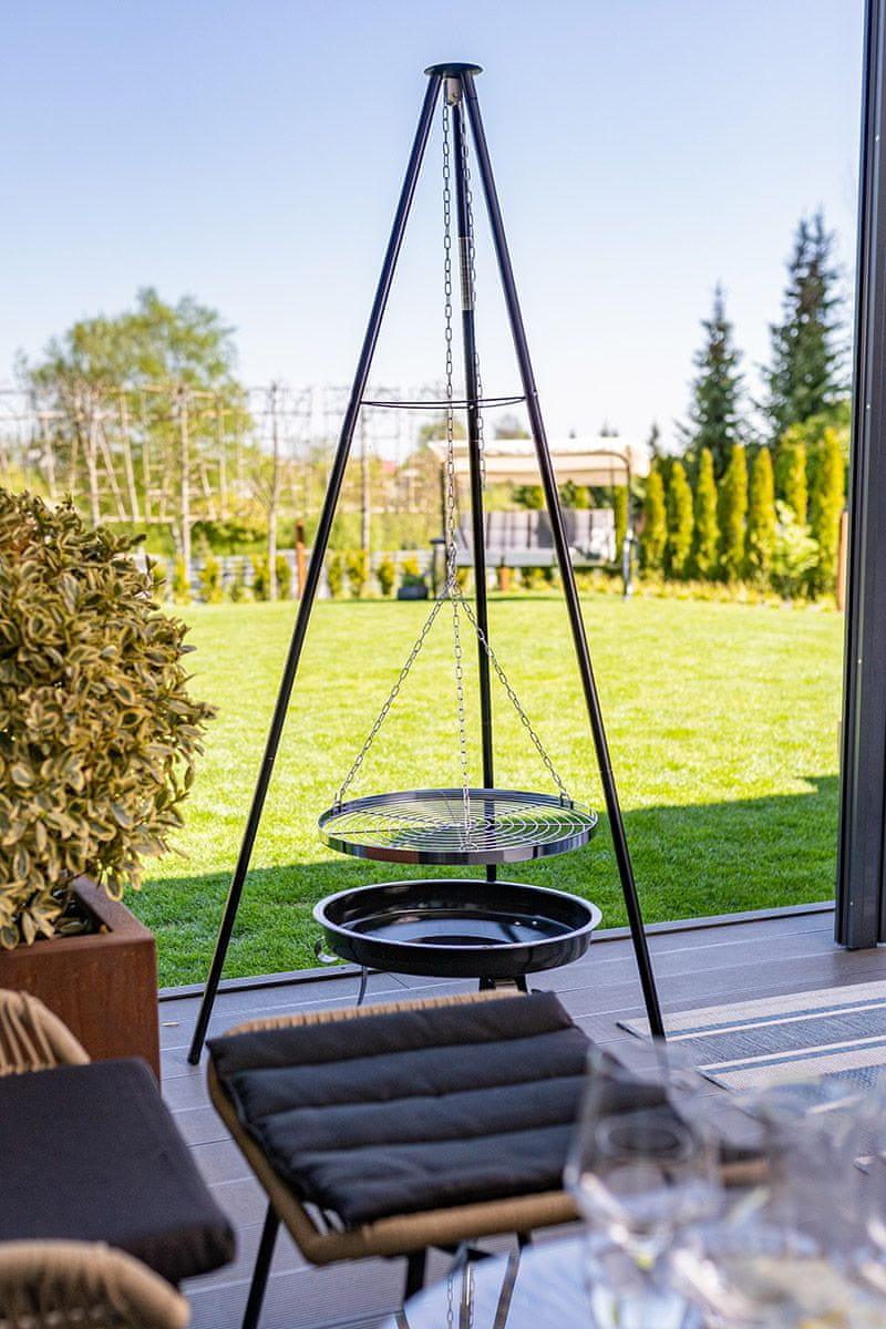 Pripravite popolne jedi na žaru za vas in vaše goste z vrtnim žarom NB-338. Ta trikraki žar s skledo za oglje bo idealna izbira za postavitev na vašem vrtu ali terasi, brez potrebe po posebnem prostoru. Emajlirana jeklena posoda in okvir žara zagotavljata stabilnost in dolgo življenjsko dobo. Kromirana rešetka za žar je obešena na verigi in jo je mogoče nastaviti po višini, da izberete pravo stopnjo pečenja. Zahvaljujoč skledi, ki je zgrajena na okrasnih nogah, vam ni treba imeti posebej rezerviranega prostora za kamin na vrtu. Ta vrtni žar ne bo le odličen pomočnik na družinskih praznovanjih ali peki na žaru, ampak bo tudi odlična popestritev in popestritev vašega vrta ali terase. Višina žara je 177 cm, premer posode pa 55 cm. Zložljivo ogrodje žara omogoča brez težav shranjevanje in transport.