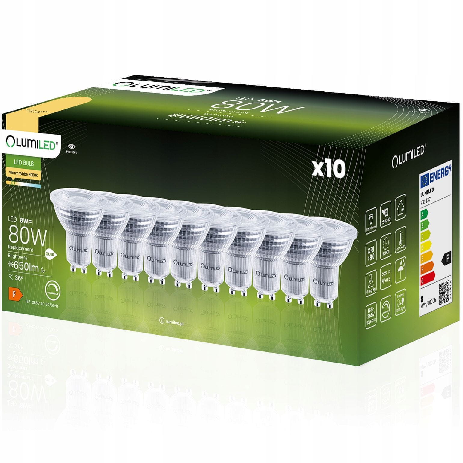 💡 Set 10× Stmievateľná LED žarnica z navojem GU10 z močjo 8W (ustreza klasičnemu 80W svetlobnemu viru) znanega in uglednega podjetja LUMILED je visokokakovosten svetlobni vir s toplo belo barvo 3000K in svetlobni tok 650lm. Žarnica ima funkcijo zatemnitve. Set je sestavljen iz desetih žarnic. Celoten opis