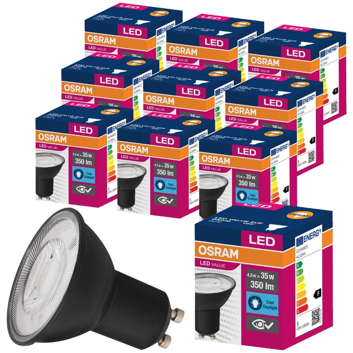 💡 Set 10× LED žarnica PAR16 v črni barvi iz serije VALUE znanega in priznanega OSRAM s podstavkom GU10 z močjo 4,5W (ustreza klasičnemu svetlobe z izhodna moč 35W) je visokokakovosten vir svetlobe z Nevtralno belo barvo 4000K in svetlobnim tokom 350lm. Žarnica je idealna za vsak dom, trgovino, hotel ali restavracijo kot naglasna ali dekorativna osvetlitev. Kot žarka žarnice je 120°.