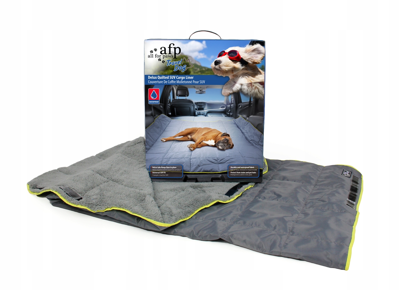 Podloga za prtljažnik AFP TRAVEL Dog Delux je vodoodporna in ima Velcro za pritrditev v avto.