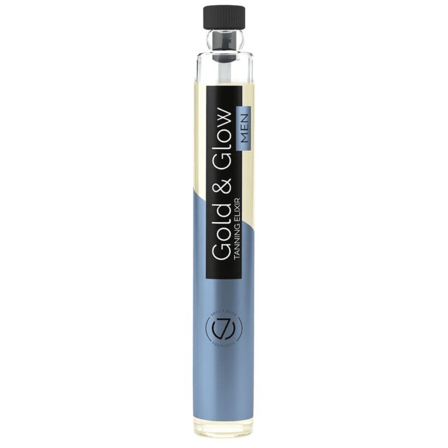 7suns Gold & Glow eliksir za porjavitev za moške 10 × 6 ml Moč modre različice Gold & Glow je v kombinaciji dveh za moške še posebej pomembnih lastnosti: visoke učinkovitosti (v majhnih odmerkih) in prijetnega, izrazito moškega vonja. Če so se stranke vašega salona zanimale za izvirni Gold & Glow, vendar je bil prejšnji vonj zanje preveč cvetličen, imamo rešitev! Lastnosti: Takoj se vpije in ne pušča sledi na akrilnih površinah. Zadostuje hitra dezinfekcija ležalnika, enaka sončenju brez izdelka ali z lahkim losjonom za sončenje. Formula suhega olja temelji na lahkih, naravnih sestavinah. Že od samega začetka je bila sestava kozmetike razvita z mislijo na sončenje, predvsem v solariju. Za razliko od večine olj za porjavitev, ki so na voljo na trgu, ne vsebuje težkih masl, olj ali voskov. Najučinkovitejša zaščita pred fotostaranjem. Olje mošusne vrtnice vsebuje retinoinsko kislino, najmočnejši retinoid z lastnostmi proti staranju in odpravlja učinke fotostaranja. Zmanjša razbarvanje, koža pa z vsako uporabo postane bolj elastična. Izvleček listov rožmarina je močan antioksidant, preprečuje tudi staranje kože in jo učvrsti. Vitamin E regenerira, intenzivno nahrani in povrne koži prožnost in čvrstost. Največji pospešek. Vsebuje MelanoBlend, mešanico naravnih sestavin, ki pospeši razvoj intenzivne in resnično dolgotrajne porjavelosti. Deluje še več ur po nanosu in poglablja učinke porjavelosti. To je eden najmočnejših pospeševalcev porjavitve 7suns – do 300-krat močnejši! Za solarij … in plažo. Zaradi formule suhega olja je Gold & Glow idealen tudi za plažo. Stranke cenijo, da se zrna peska ne primejo kože. V svojo torbo za na plažo vrzite nekaj vial in zagotovo se boste z dopusta vrnili z zlato, enakomerno in globoko porjavelo barvo!
