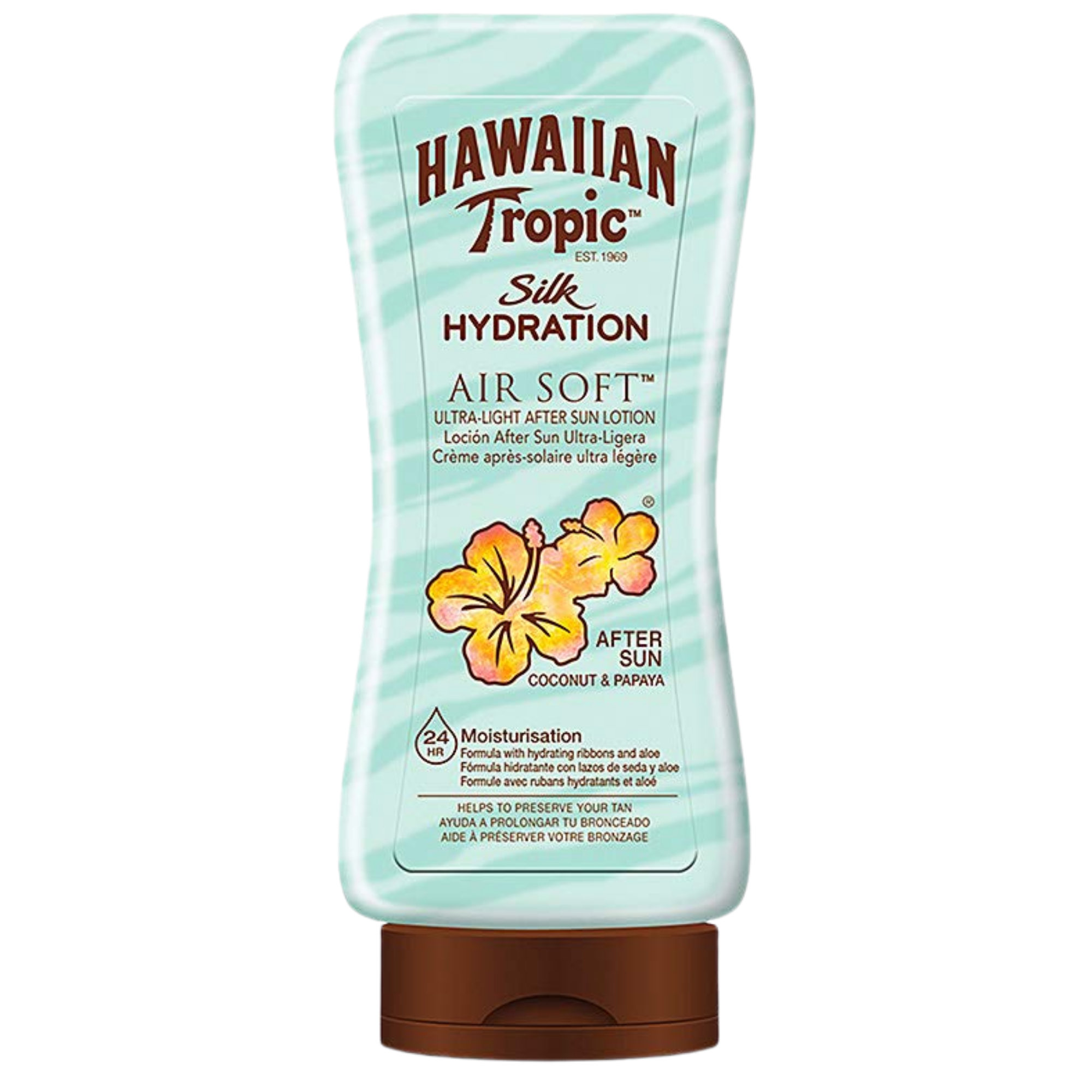 Hawaiian Tropic Silk Hydration ultra-lahek losjon nahrani vašo kožo po dnevu na soncu z lahko formulo, ki daje občutek, kot da bi jo komaj morali nanesti! Ta edinstvena vlažilna formula z dvojnim trakom z vlažilnim losjonom, karitejevim maslom in aloe vero zagotavlja 24-urno vlaženje, kožo naredi gladko, voljno in izjemno mehko, hkrati pa pomaga ohranjati vašo porjavelost. Ta losjon za po sončenju je nelepljiv in nemasten ter zagotavlja rahlo vlaženje. Hawaiian Tropic Silk Hydration Lotion je oblikovan z otoškimi rastlinami in sestavinami, kot so aloja, papaja, mango, pasijonka, plumerija in guava, za nego kože, ki ji lahko zaupate. Poleg nege vaše kože Hawaiian Tropic pomaga tudi pri negi planeta z ustvarjanjem grebenom prijaznih izdelkov za sončenje brez krutosti.