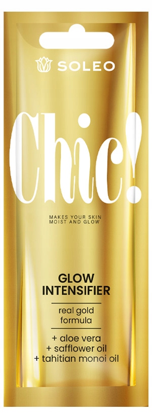 Chic! Visoko vlažilni pospeševalnik porjavitve z zlatimi delci. Popoln za obraz in telo.