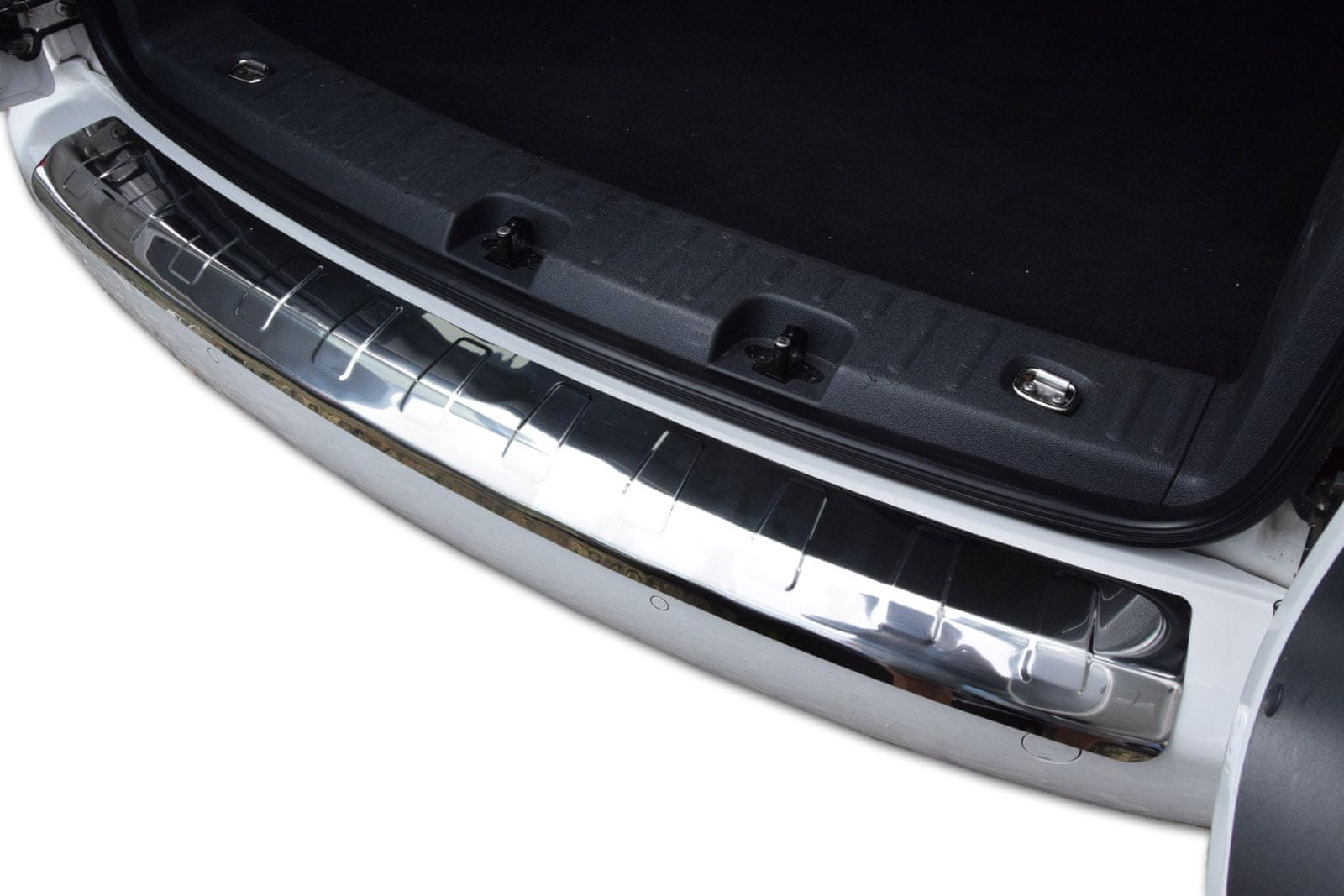 Pokrov odbijača iz nerjavnega jekla ščiti prag zadnjega odbijača vašega avtomobila pred poškodbami in praskami na nakladalni površini zaradi nakladanja in razkladanja prtljage in drugih prevažanih predmetov med vsakodnevnim delovanjem.
