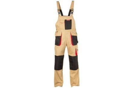 kombinežne hlače, bež barve z oprsnikom material: 100 % bombaž, 270 g/m2 posebna zasnova zaponke preprečuje zdrs navzdol 10 žepov, od tega 6 z ježkom žep za mobilni telefon trojni šivi nastavitev. Celoten opis