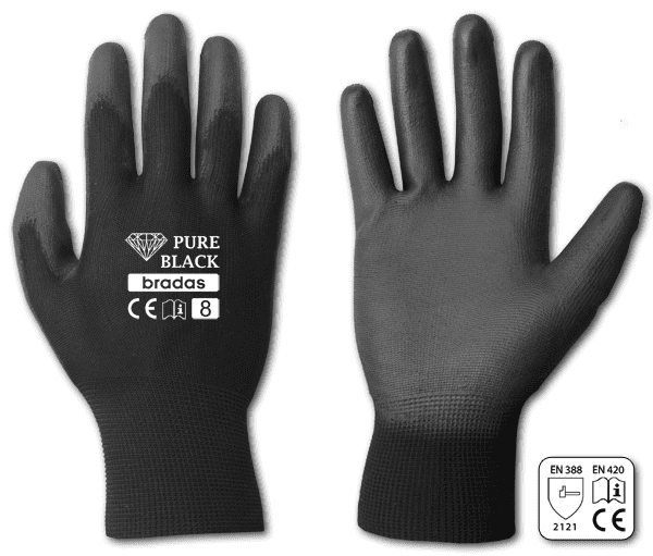 Zaščitne rokavice PURE BLACK iz poliuretana, velikost 9