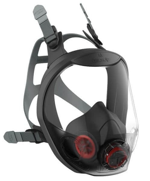 Združljiva s široko paleto nizkoprofilnih filtrov in posod, ki ščitijo pred delci, številnimi plini in plinskimi hlapi, nameščenimi na straneh maske za zmanjšanje omejitev vidnega polja.