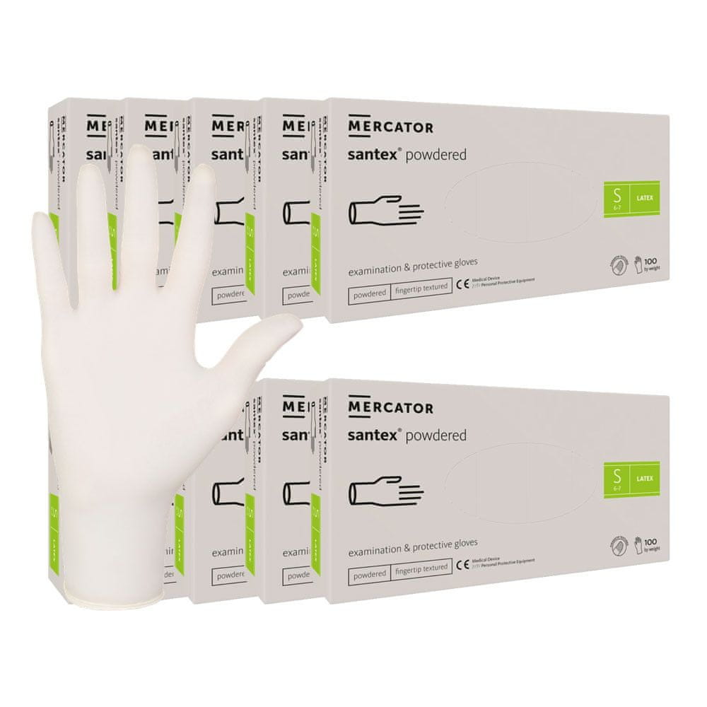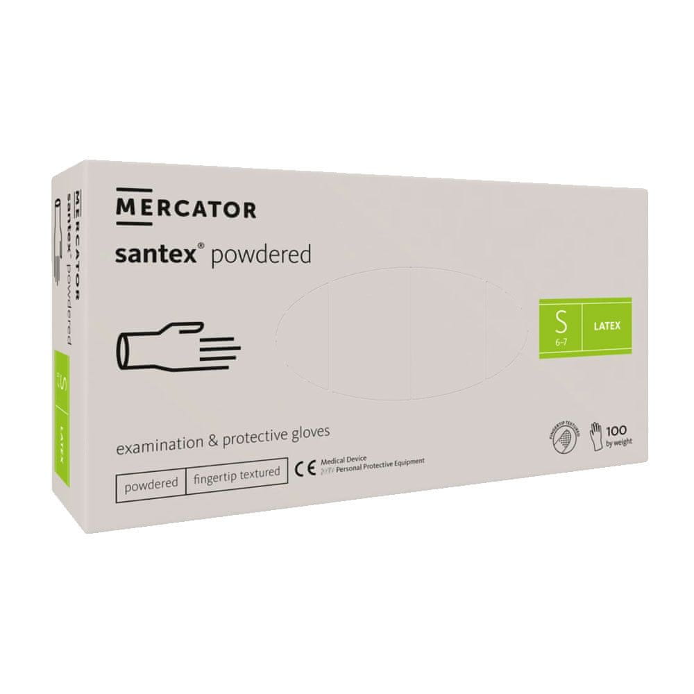 Lateks rokavice S pudraste Santex prstne rokavice s pudrom v prahu, tekst, 100 kosov, karton, 10 kosov Celoten opis