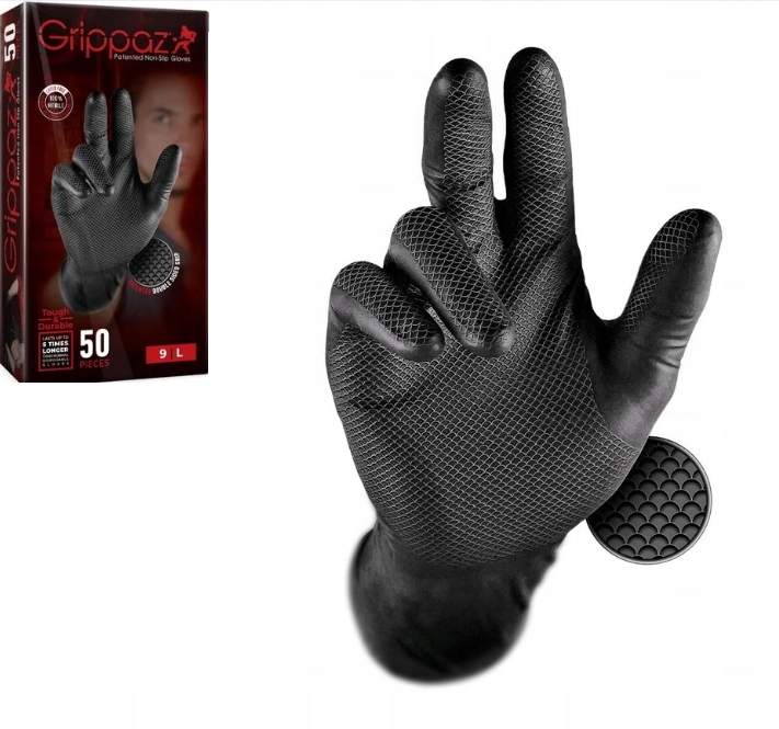 Rokavice Grippaz so inovativen izdelek, ki združuje vzdržljivost, udobje in varnost. Izdelane so iz trpežnega nitrila, debele so 0,1524 mm (6 mil), zaradi česar so izjemno odporne na poškodbe. Idealne so tako za delavniško kot industrijsko delo, njihova ergonomska oblika pa zagotavlja udobno uporabo.