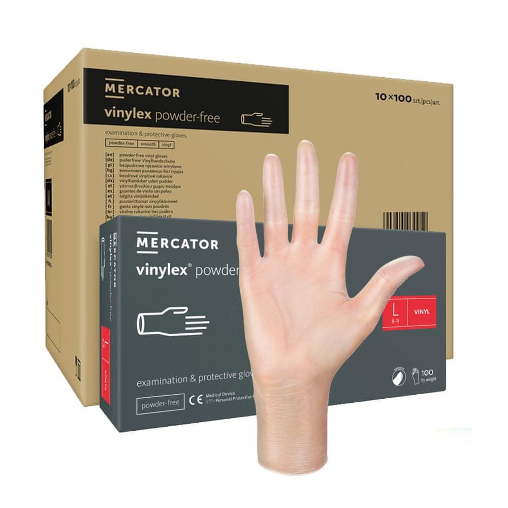 Vinilne rokavice L brez pudra Mercator Vinylex prozorne 100 kosov v kartonu 10 kosov Celoten opis