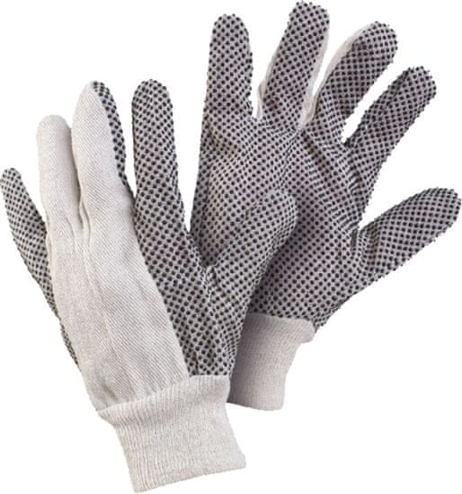 Moške bombažne delovne rokavice kategorije CE 1 z elastičnim zapestnim obližem, dlanjo in prsti s PVC tarčami.