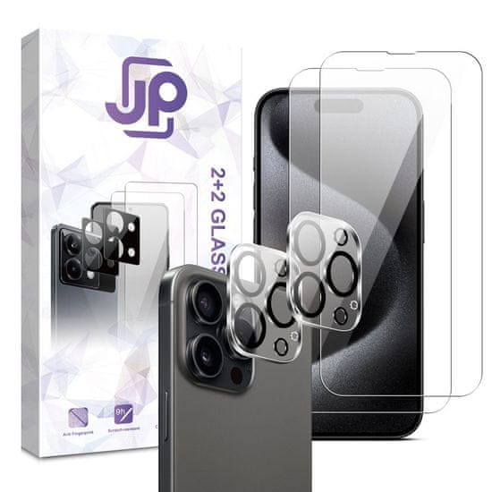 JP JP Combo pack, Komplet 2 kaljenih stekel in 2 stekel za kamero, iPhone 15 Pro