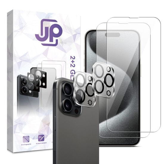 JP JP Combo pack, Komplet 2 kaljenih stekel in 2 stekel za kamero, iPhone 15 Pro Max