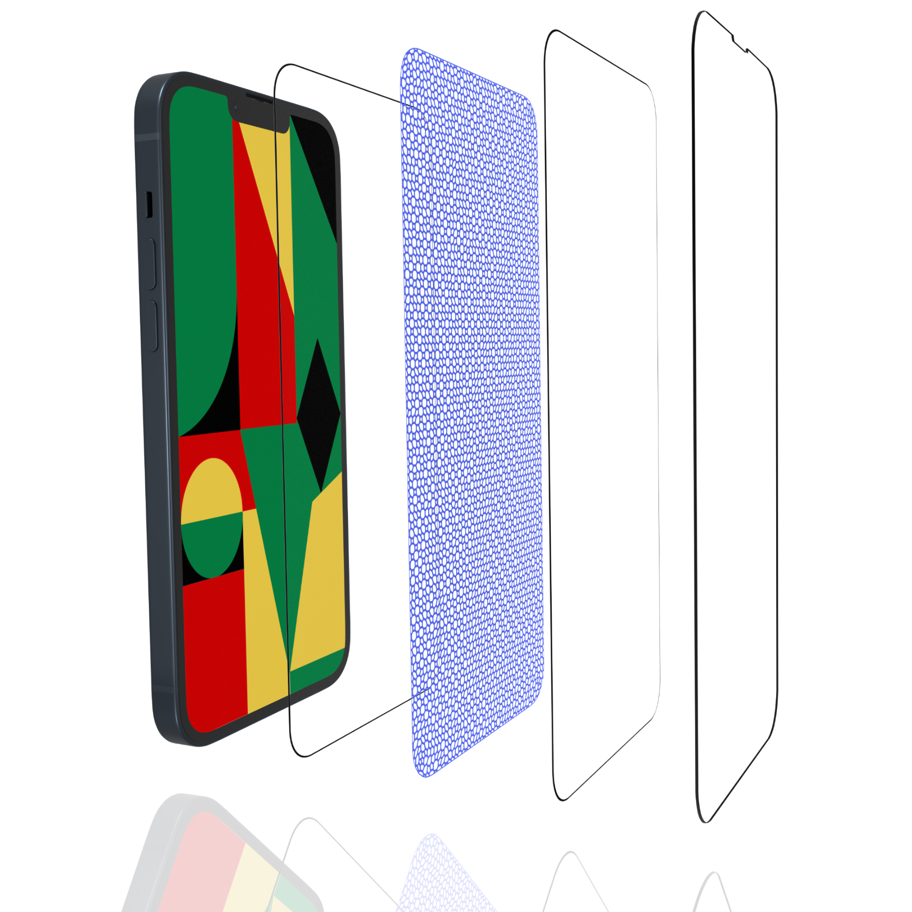 - Plast za zaščito pred praskami – Ščiti zaslon pred praskami in ohranja njegovo jasnost. Kompozit „Matrix Flex“ – Ključ do naše inovacije. Ta plast omogoča, da se steklo