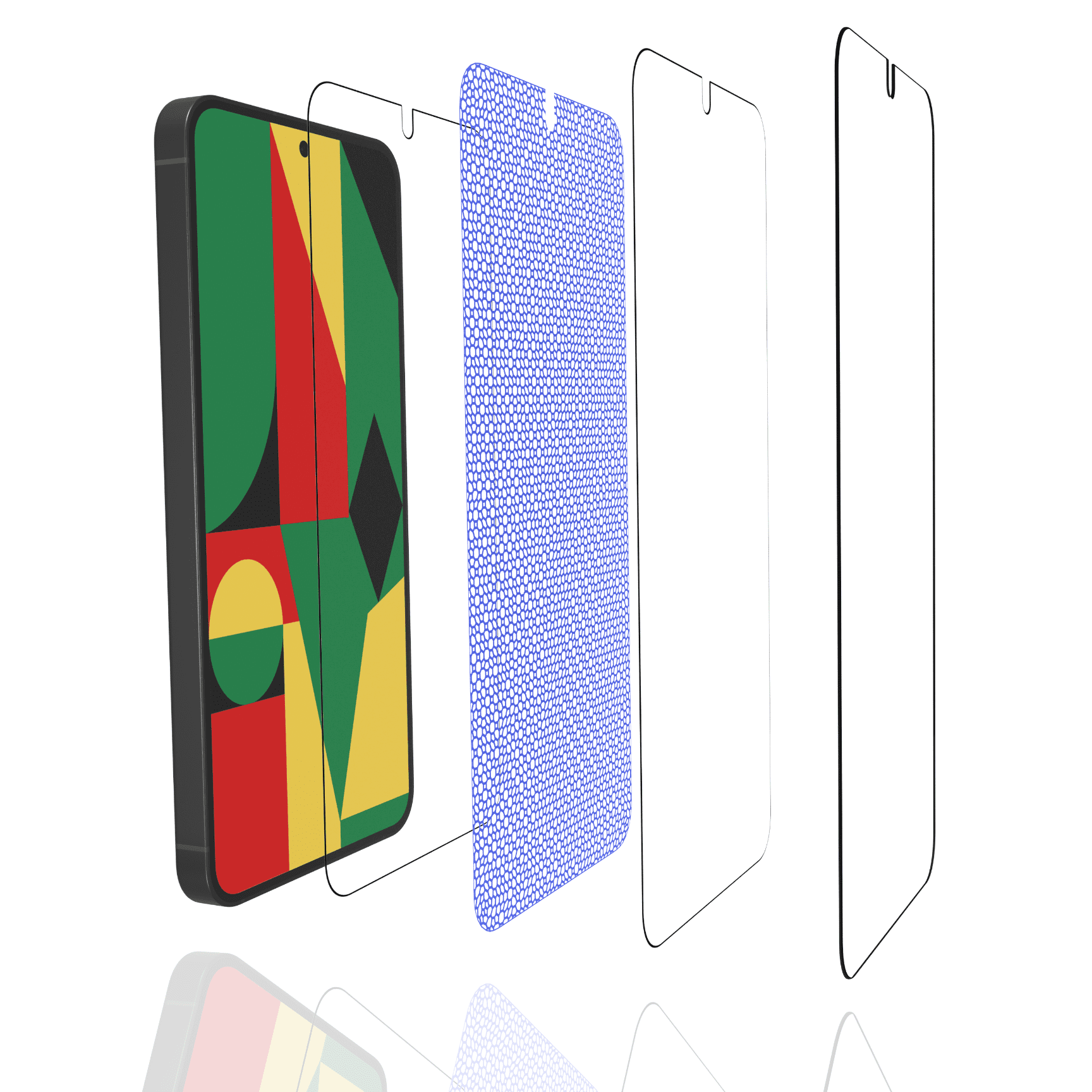- Plast za zaščito pred praskami – Ščiti zaslon pred praskami in ohranja njegovo jasnost. Kompozit „Matrix Flex“ – Ključ do naše inovacije. Ta plast omogoča, da se steklo