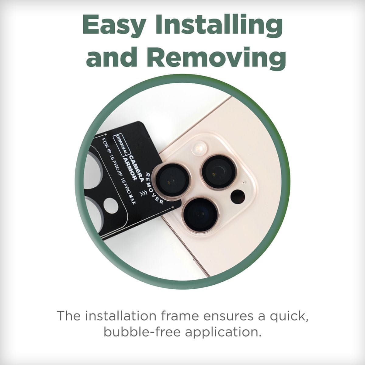 - Lahka namestitev: Okvir za enostavno namestitev zagotavlja hitro namestitev brez mehurčkov, kar vam omogoča popolno namestitev z minimalnim naporom. Tanek profil je zasnovan tako, da je prijazen do ohišja, zato pušča 0,2 mm prostora med ščitnikom objektiva in vašim ohišjem, kar zagotavlja popolno združljivost brez povečanega obsega.