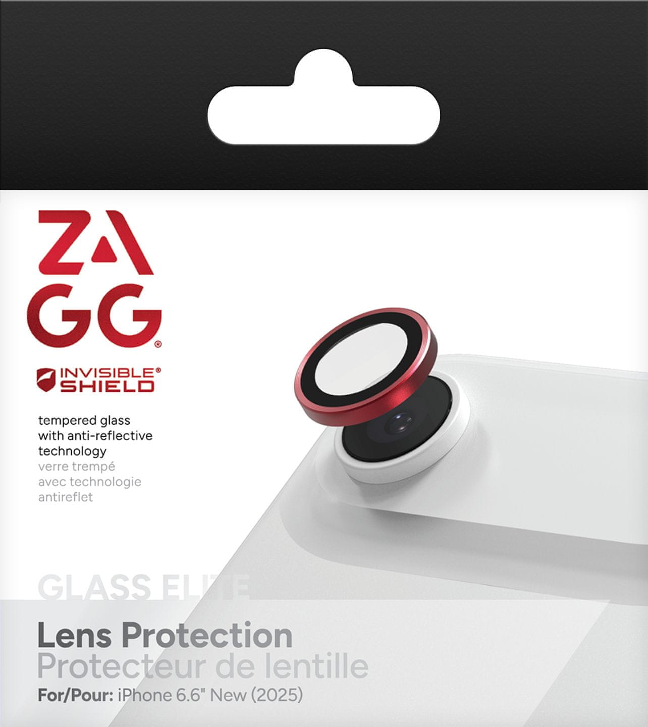 ZAGG InvisibleShield Premium steklo (kamera) Apple iPhone 17 Air Rdeča Zaščitno steklo ZAGG ščiti vaš zaslon pred manjšimi praskami in pomaga absorbirati udarce ob padcih. S trdoto 9H odlično ščiti zaslon pred poškodbami. Zunanja prevleka stekla zmanjšuje tveganje, da bi na njem ostali prstni odtisi. Lepa lastnost so zaobljeni 2,5D robovi, ki se lepo zlijejo z zaslonom. Ohranja popolne lastnosti zaslona na dotik, saj ima po celotni površini lepilno plast. Prednost je, da zaščitno steklo pokriva celotno površino naprave od roba do roba. Celoten zaslon tako ostane popolnoma zaščiten.